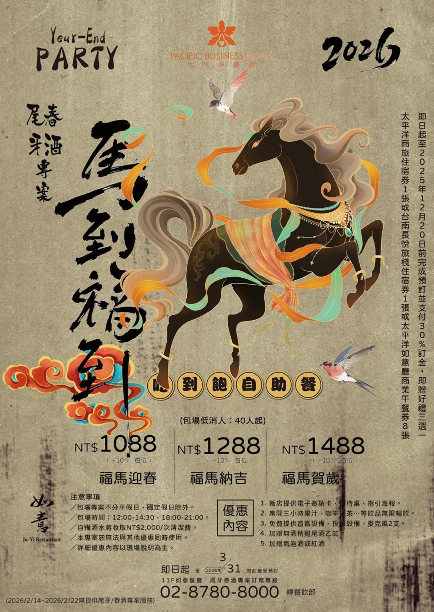 - 本專案不適用於國定假日及2026/2/14~2026/2/22春節連續假期,且無法與其他優惠同時使用,詳細優惠內容以飯店說明為主。